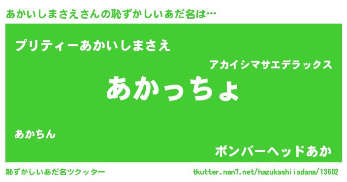 | ファンタジー風あだ名 | 『エターナルアカイシマサエー』 |
