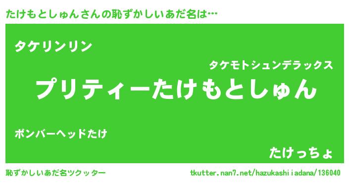 | ヒーロー風カッコイイあだ名 | 『スーパータケモトシュン』 |