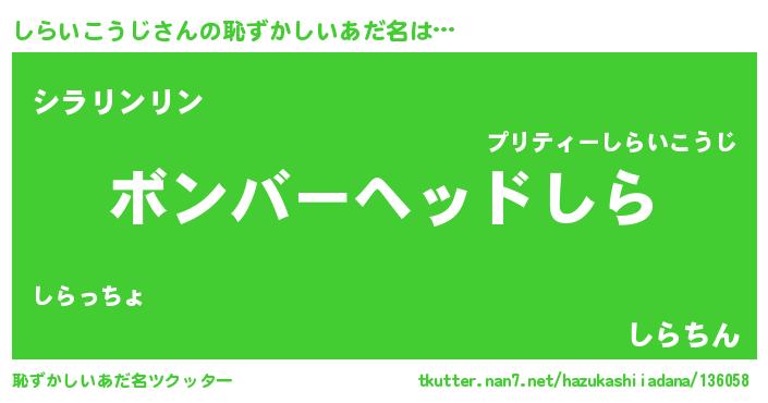 | ヘコむあだ名 | 『しらを』『しらいこうじ(苦笑)』 |