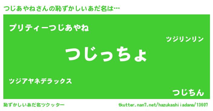 | 欧米人風あだ名 | 『アンジェラ・つじあやね』 |