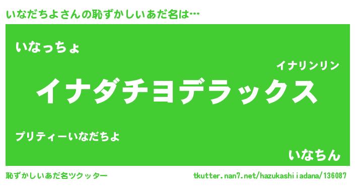 | 意味不明あだ名 | 『自称いなだちよ』『永久保存いなだちよ』 |