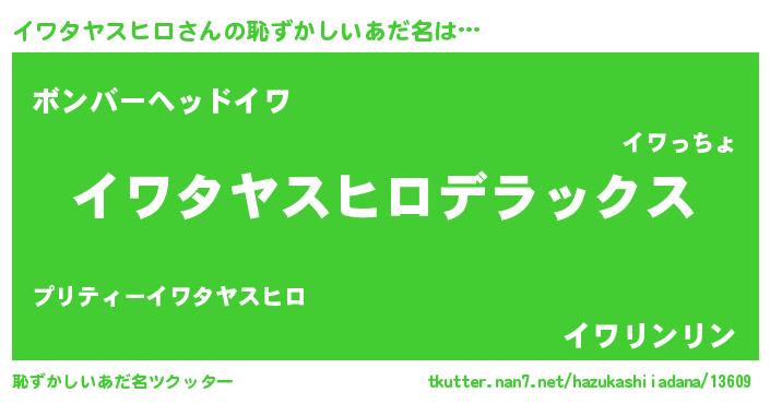 | 男性向けラノベタイトル風あだ名 | 『この素晴らしい世界にイワタヤスヒロを!』 |