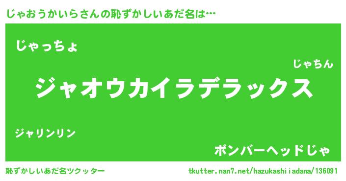 | 意味不明あだ名 | 『自称じゃおうかいら』 |