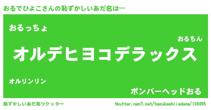 | 男性向けラノベタイトル風あだ名 | 『Re:おるでひよこから始める異世界生活』 |