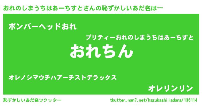 | 欧米人風あだ名 | 『トリンドルおれのしまうちはあーちすと』 |