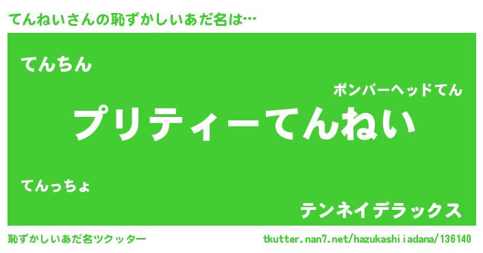 | 意味不明あだ名 | 『ペロリンてんねい』『永久保存てんねい』 |