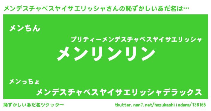 | ポケモン風あだ名 | 『ヒメンデスチャベスヤイサエリッシャ』 |