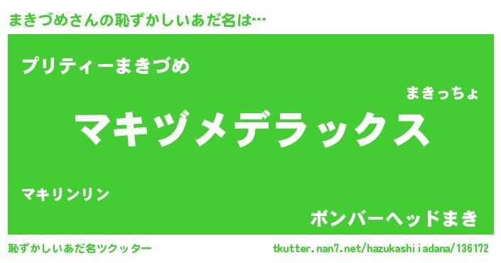 | 意味不明あだ名 | 『自称まきづめ』『ペロリンまきづめ』 |