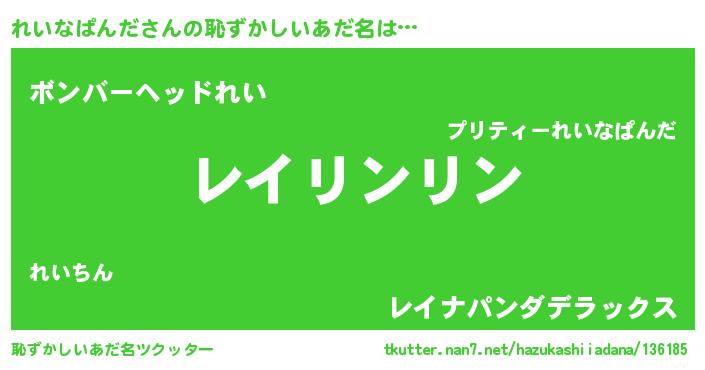 | 意味不明あだ名 | 『とにかく怪しいれいなぱんだ』 |