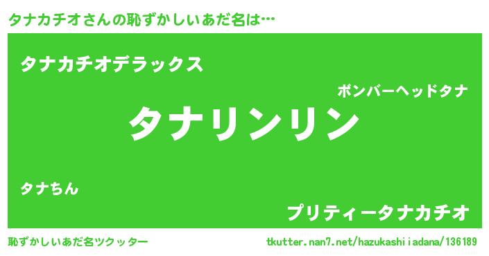 | 意味不明あだ名 | 『とにかく怪しいタナカチオ』 |