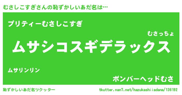 | 意味不明あだ名 | 『自称むさしこすぎ』 |