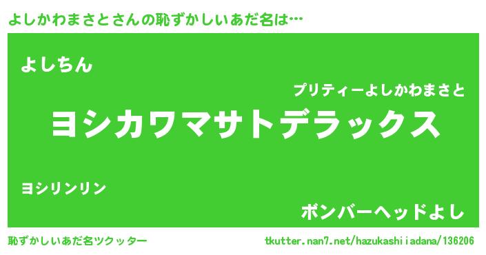 | ヘコむあだ名 | 『よしかわまさと(笑)』『よしにー』 |