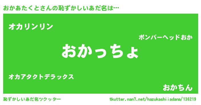| ポケモン風あだ名 | 『オカアダネ』『ヒオカアタクト』 |