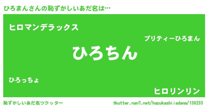| 男性向けラノベタイトル風あだ名 | 『この素晴らしい世界にひろまんを!』 |