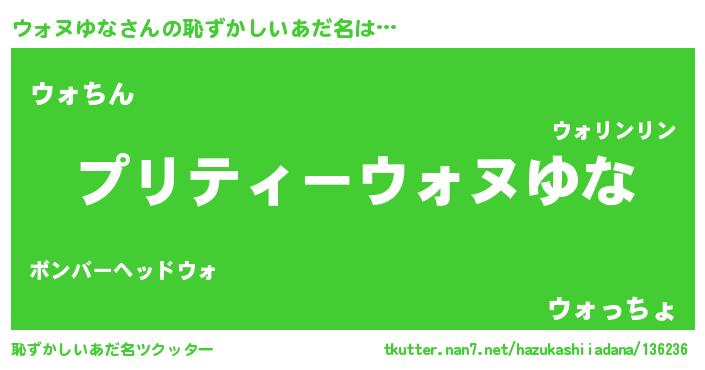 | ヘコむあだ名 | 『ウォもー』『ウォヌゆな(震え声)』 |