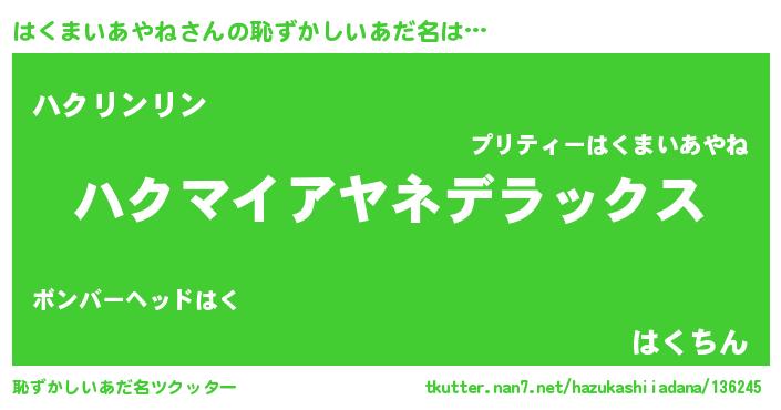 ヘコむあだ名 | 『はくっ子』『はくまいあやね(笑)』 |
