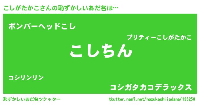 | ヘコむあだ名 | 『こしがたかこ(小並感)』『こしもー』 |