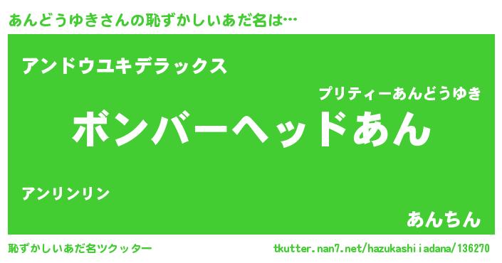 | 意味不明あだ名 | 『眠気覚ましガムあんどうゆき味』 |
