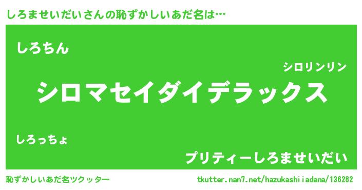 | ヘコむあだ名 | 『しろませいだい(笑)』『しろもー』 |