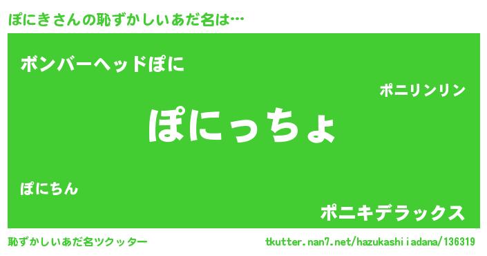 | 意味不明あだ名 | 『住所不定無職ぽにき(3歳)』『自称ぽにき』 |