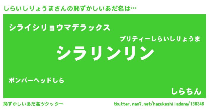 | 意味不明あだ名 | 『とにかく怪しいしらいしりょうま』 |