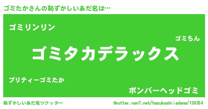 | ヒーロー風カッコイイあだ名 | 『究極戦士ゴミタカ』『炎刃騎士ゴミ』 |