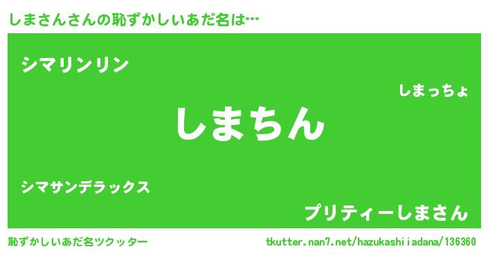 | 男性向けラノベタイトル風あだ名 | 『しまさんという概念が存在しない退屈な世界 』 |