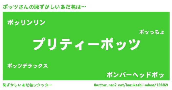 | ヒーロー風カッコイイあだ名 | 『スーパーボッツ』『銀牙騎士ボッ』 |