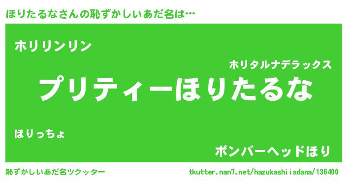 | 女子向けラノベタイトル風あだ名 | 『ほりたるな姫と円卓の騎士』 |