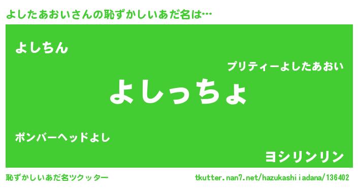 | 意味不明あだ名 | 『よしたあおいフォーエバー』 |