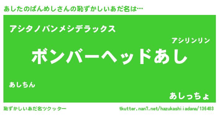 | ピコ太郎風あだ名 | 『アア太郎』『ピア三郎』『アシ六郎』 |