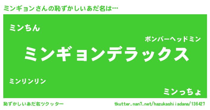 | 意味不明あだ名 | 『住所不定無職ミンギョン(7歳)』 |