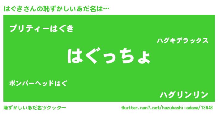 | 料理風あだ名 | 『はぐきごはん』『はぐきの豆乳スープ』 |