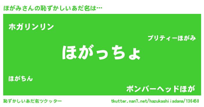 | ヒーロー風カッコイイあだ名 | 『ウルトラほがみマン』『仮面ホガダー』 |