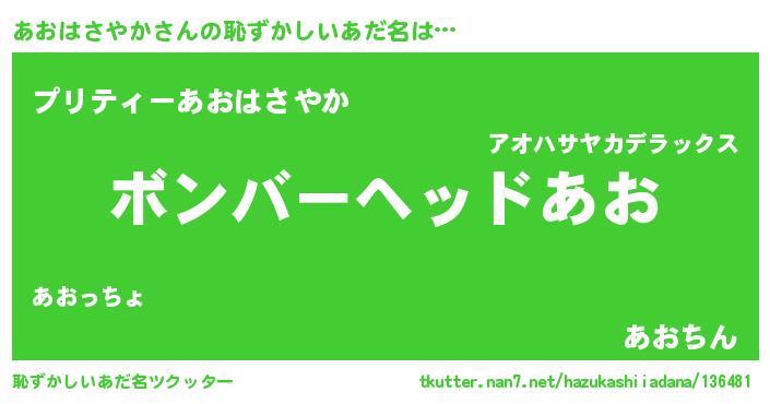 | ヘコむあだ名 | 『あおっふぃ~』『あおはさやか(震え声)』 |