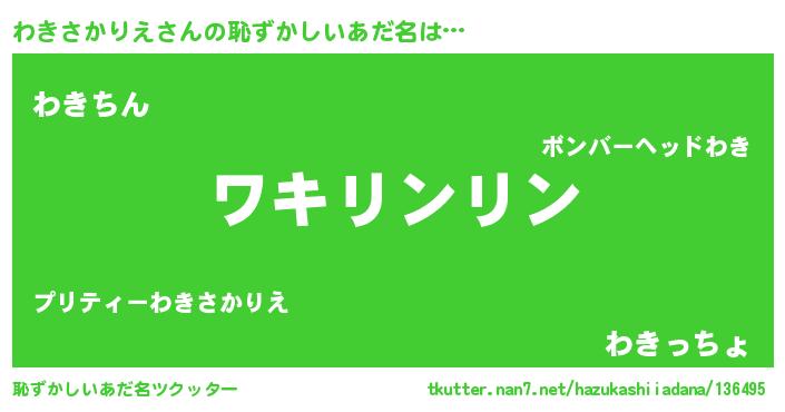 | ヘコむあだ名 | 『わきっちょ』『わきさかりえ(遠い目)』 |