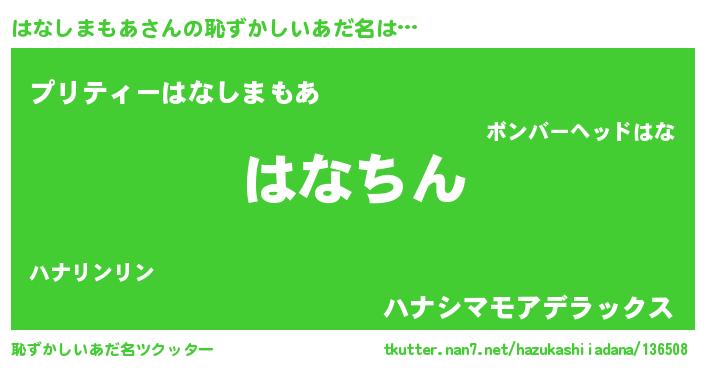 | ヘコむあだ名 | 『はなしまもあ(爆)』『はなにー』 |
