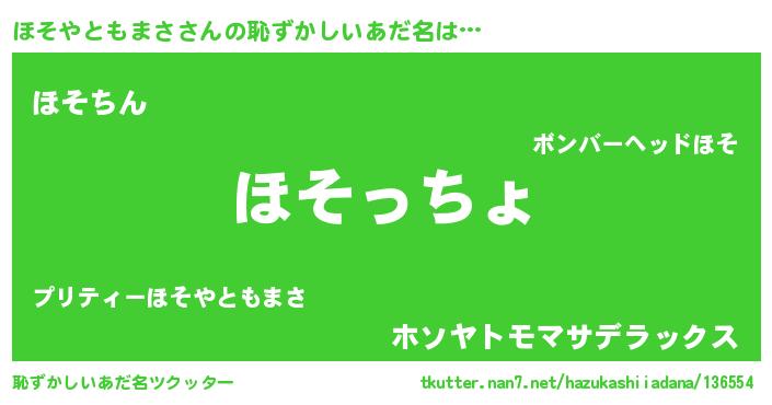 | 意味不明あだ名 | 『ほそやともまさフォーエバー』 |