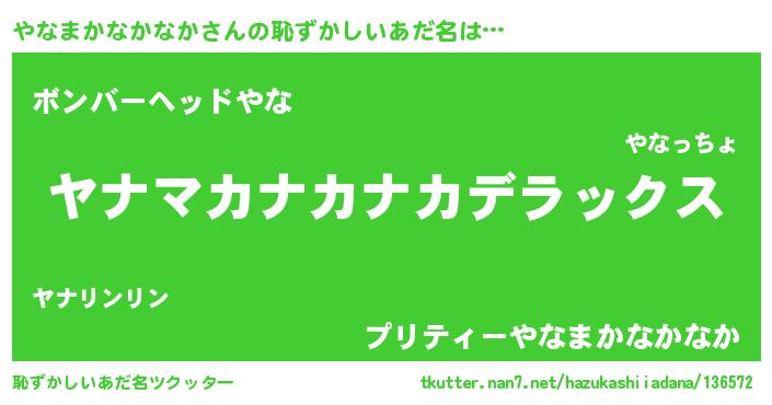 | 男性向けラノベタイトル風あだ名 | 『Re:やなまかなかなかから始める異世界生活』 |