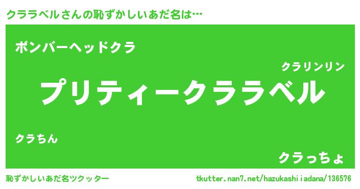 | 男性向けラノベタイトル風あだ名 | 『クララベルの憂鬱』『緋弾のクララベル』 |