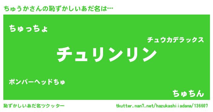 | ヒーロー風カッコイイあだ名 | 『幻影騎士チュ』『ウルトラちゅうかマン』 |