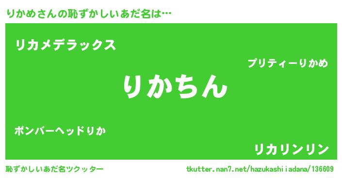 | ヘコむあだ名 | 『りかめ(震え声)』『りかお』『豆乳』 |