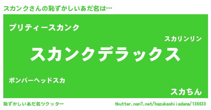 | ヘコむあだ名 | 『スカもー』『スカンク(笑)』 |
