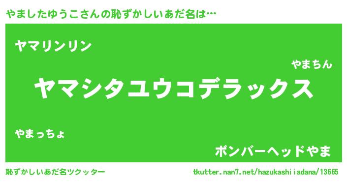 | 男性向けラノベタイトル風あだ名 | 『Re:やましたゆうこから始める異世界生活』 |