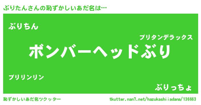 | ヘコむあだ名 | 『ぶりたん(苦笑)』『なまこ酢』 |