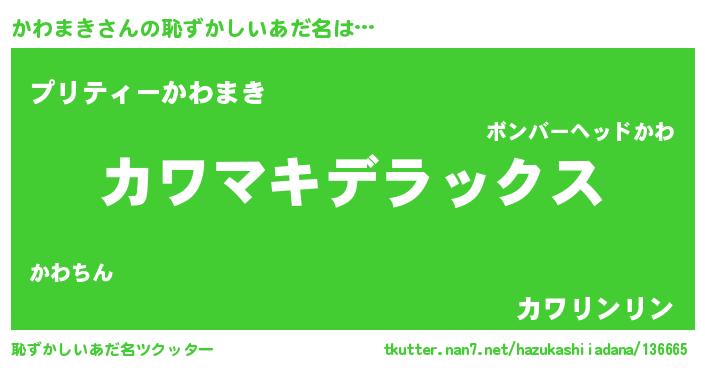 | 男性向けラノベタイトル風あだ名 | 『Re:かわまきから始める異世界生活』 |