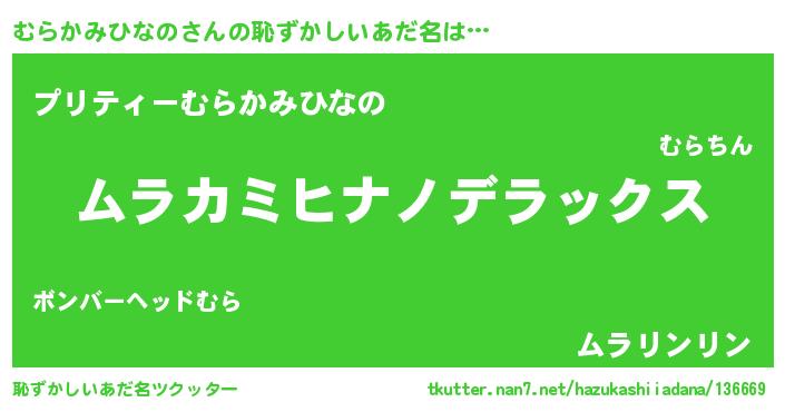 | ヒーロー風カッコイイあだ名 | 『ウルトラ戦士ムラカミヒナノ』 |