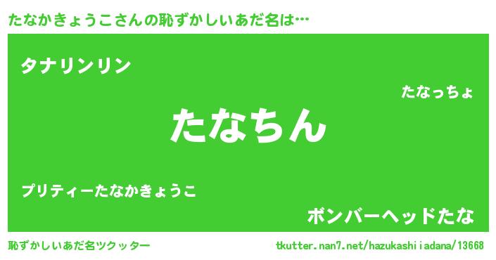 | 意味不明あだ名 | 『永久保存たなかきょうこ』 |