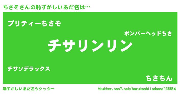 | 意味不明あだ名 | 『めかぶ科ちさそ属』『ペロリンちさそ』 |
