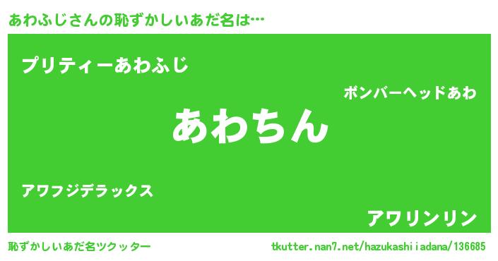 | 意味不明あだ名 | 『永久保存あわふじ』『ペロリンあわふじ』 |